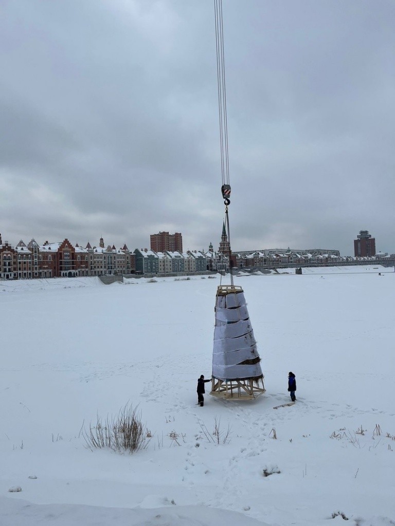 «В этом году обряд сжигания соломенной бабы состоится на льду реки Малая Кокшага. Из-за ветра работы проводятся в два этапа: сегодня опустили нижнюю часть чучела, затем будет собрана верхняя часть и надето «платье», ‒ отметили в мэрии.