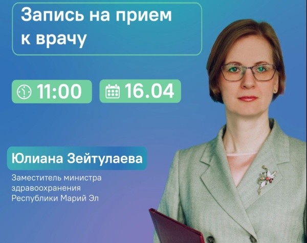 16 апреля в 11:00 заместитель министра здравоохранения Марий Эл Юлиана Зейтулаева ответит на вопросы жителей республики в прямом эфире.