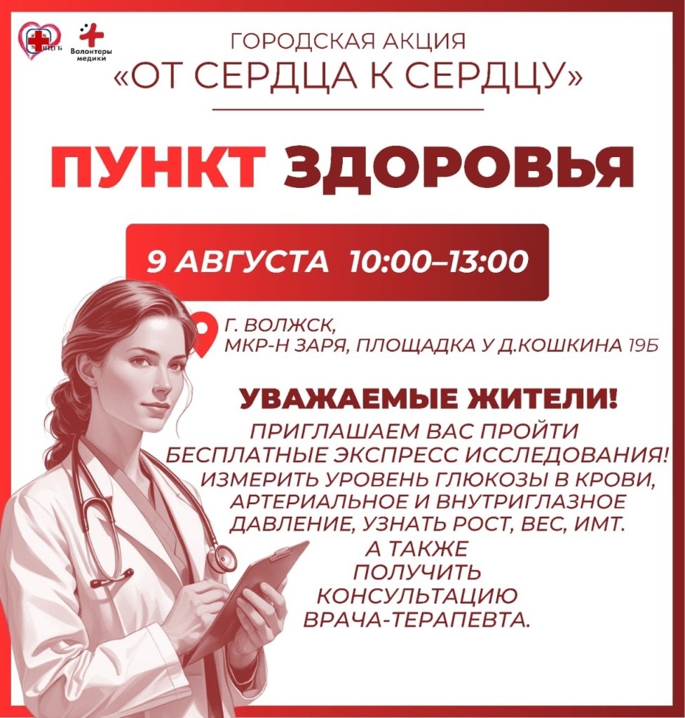 «Пункт здоровья», который откроется в Волжске 9 августа, стал частью городской акции «От сердца к сердцу» и призван помочь жителям пройти медицинские исследования бесплатно.