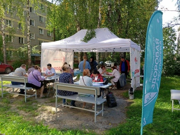 «Пункт здоровья» во дворе дома №37б по улице Лебедева волонтёры-медики и специалисты поликлиники №3 развернули 31 августа, и он начал свою работу чуть раньше десяти утра. Горожане заранее собрались у примечательной палатки, чтобы пройти первый этап диспансеризации. Информация о работе проекта с указанием времени и места размещалась за неделю до начала работы пунктов, так что йошкаролинцы могли спланировать свой выход во двор – поликлиника сама приехала к ним, и далеко идти не нужно.