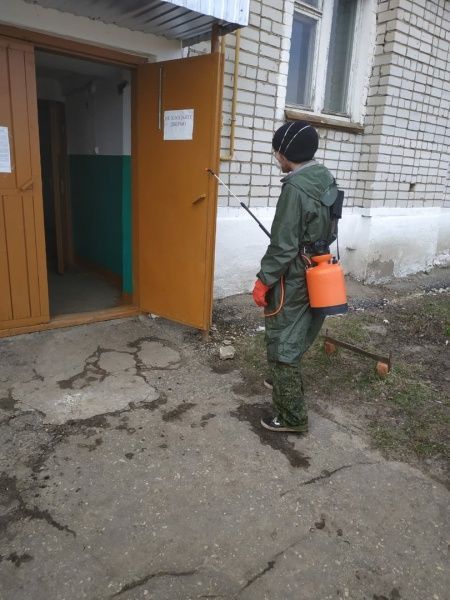 Для профилактики распространения коронавируса в поселке Параньга (Марий Эл) проводится санитарная обработка подъездов домов.