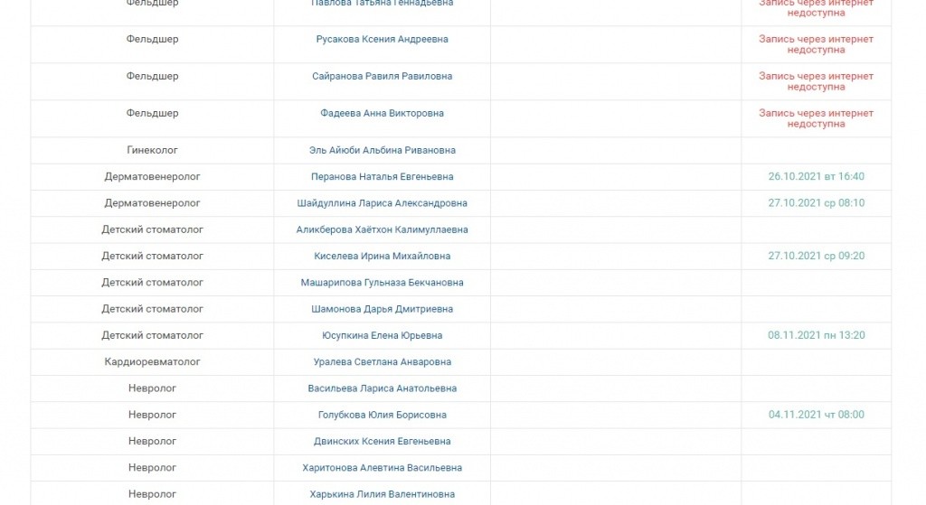 Список врачей также дополняется. Пока не к каждому специалисту можно попасть, записавшись через сервис. Для того, чтобы быстрее узнать, к кому доступ через интернет открыт, нужно выбрать организацию во вкладке "Услуги", а затем нажать на кнопку «Специалисты». Напротив фамилии врачей, которых пока нет в списке, будет написано: «Запись через интернет недоступна». Но это лишь временные неудобства.
