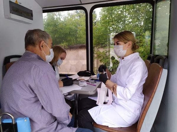 В первом автобусе располагались флюрограф и маммограф, во втором проводились процедуры забора крови, измерения глазного и артериального давления, электрокардиограмма и другие исследования. Также велась консультация врача-терапевта.