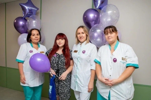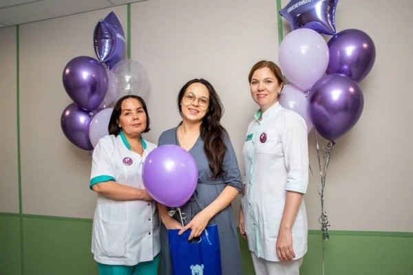 Отделение украсили белыми и фиолетовыми шарами. А 17 ноября по инициативе благотворительного фонда «Право на чудо» более 500 объектов по всей стране зажгли фиолетовые огни в знак поддержки семей, в которых дети родились раньше срока. Фиолетовый – официальный цвет благотворительного фонда «Право на чудо», он символизирует надежду, сострадание и открытость.