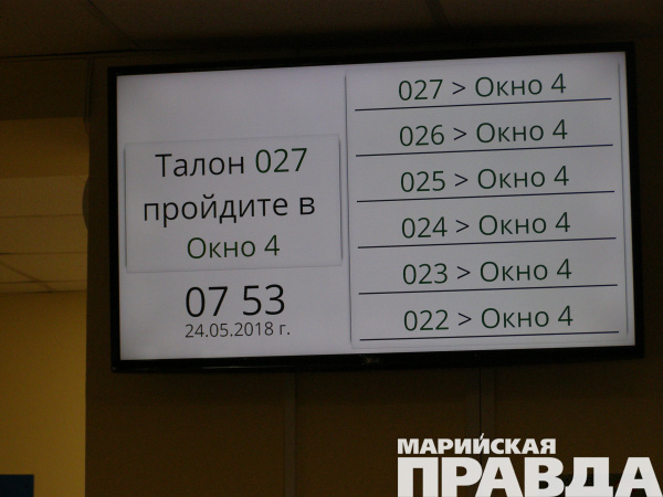Одновременно на главном электронном табло отображается движение очереди: можно проследить, в каком окне и какой очередник обслуживается.