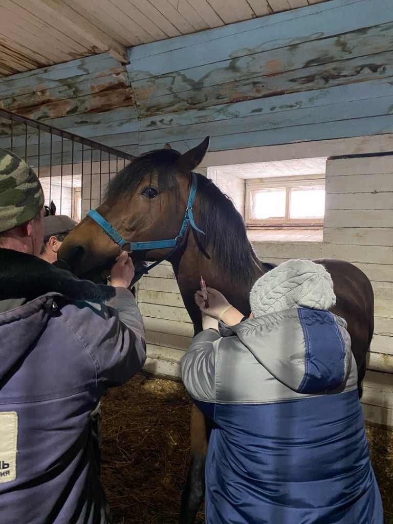 Затем настала очередь прививок от бешенства и других инфекций: их поставили собаке и рыси. После этого «Айболиты» провели отбор проб сыворотки крови двух лошадей, чтобы проверить здоровье скакунов.