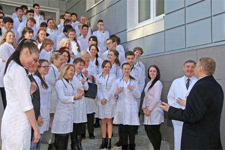 В завершении визита Глава региона пообщался со студентами и ответил на их вопросы. Разговор касался инновационных технологий в системе здравоохранении, подготовки кадров и многих других тем. Встреча завершилась общим снимком на память.