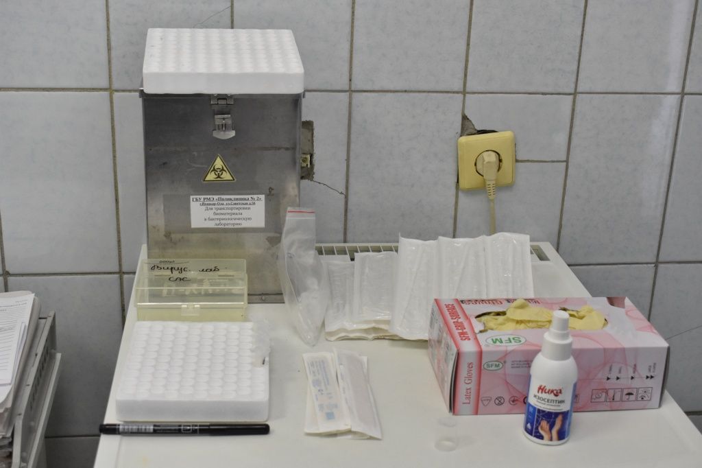 В процедурном кабинете фельдшер берет мазки из носа и зева. Пациенты, по ее словам, идут со всего города. После каждого пациента она меняет перчатки, ни к чему не прикасаясь, и моет руки. Каждую пробирку медик подписывает, присваивая ей определенный номер, под которым она фигурирует в статистике, отражающей число пришедших на прием людей. С заполнением всех необходимых документов сдача анализов занимает 5-10 минут.