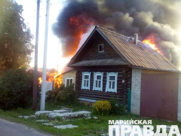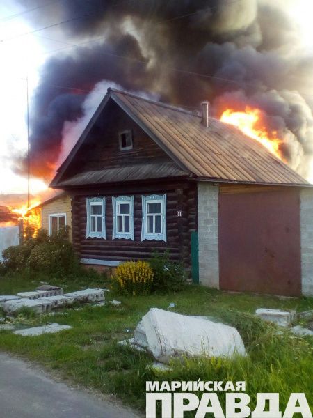 В считанные минуты пожар, начавшийся с бани, охватил расположенные близко друг от друга постройки, и жилой дом, не оставив людям жителям поселка шансов спасти имущество. О пожаре на улице Суворова (бывшая деревня Лапсола) в райцентре Медведевского района Марий Эл, происшедшем 30 июня, в рубрику «Мобильный репортер» портала marpravda.ru сообщил читатель Иван, прислав фото с места ЧП.