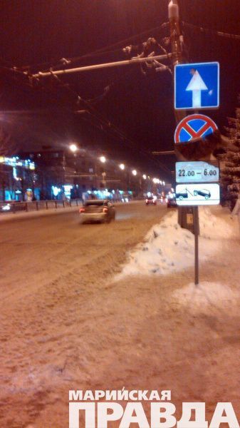 О дорожном «полузнаке», который находится в Йошкар-Оле, на улице Красноармейской, рассказал житель марийской столицы Сергей Петров, прислав фото с места.