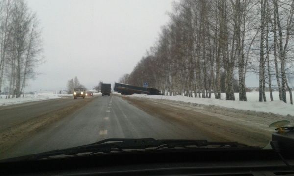 Фура-длинномер вылетела с дороги сегодня в Марий Эл.
