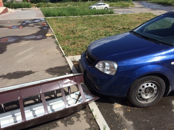 Вчера, 6 июля на улице Транспортной дом 4, в 11 часов огромная железная конструкция упала с крыши, чуть не задев иномарку.