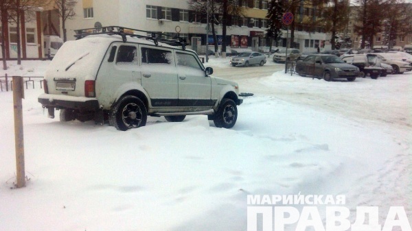 - Автомобили, припаркованные на тротуарах, на газонах и на детских площадках во дворах для Йошкар-Олы уже дело привычное. Но этот забрался не просто на территорию газона, но заехал на снежную кучу около магазина на улице Комсомольской, недалеко от перекрестка с улицей Красноармейской, и встал, как на постаменте. Вероятно, парковка у супермаркета была переполнена, вот водитель и решил поставить автомобиль на своеобразный снежный пьедестал, - рассказывает Семен Орлов.