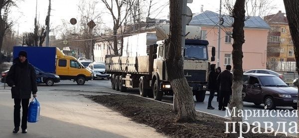 Сегодня, 28 ноября, днем в Йошкар-Оле на участке с кольцевым движением, где пересекаются улицы К. Маркса и Панфилова, произошло ДТП. Из-за этого на улице Луначарского образовалась огромная пробка. О происшествии «Марийской правде» сообщил читатель Сергей, предоставив фото с места происшествия.
