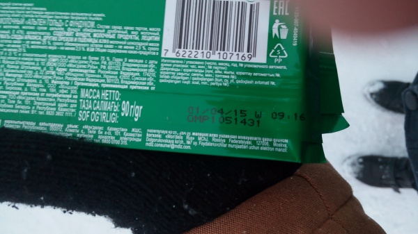 Взял в руки первую шоколадку. Думаю, дай посмотрю срок годности. Моему удивлению не было предела!!! Шоколад-то просроченным аж на три недели оказался!!! Взял второй - просрочка. Третий тоже "несъедобным" оказался.