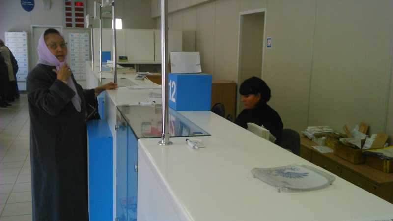 20 сентября, в субботу, когда люди обычно и идут платить по счетам, на главпочтамте работало одно окно. Люди сидели, дожидаясь своей очереди, в то время как работница в одном единственном работающем окне целый час выдавала без очереди пенсии. Когда же терпение посетителей иссякло, и люди начали требовать начальников, им ответили, что все находятся в отпуске. При этом куча сотрудников стояла, болтала или перемещалась по отделению без видимой цели. Оказывается у них в это время технические перерывы. Чем все закончилось, не знаю. Когда мы, устав ждать, покинули почту, народ бесновался.