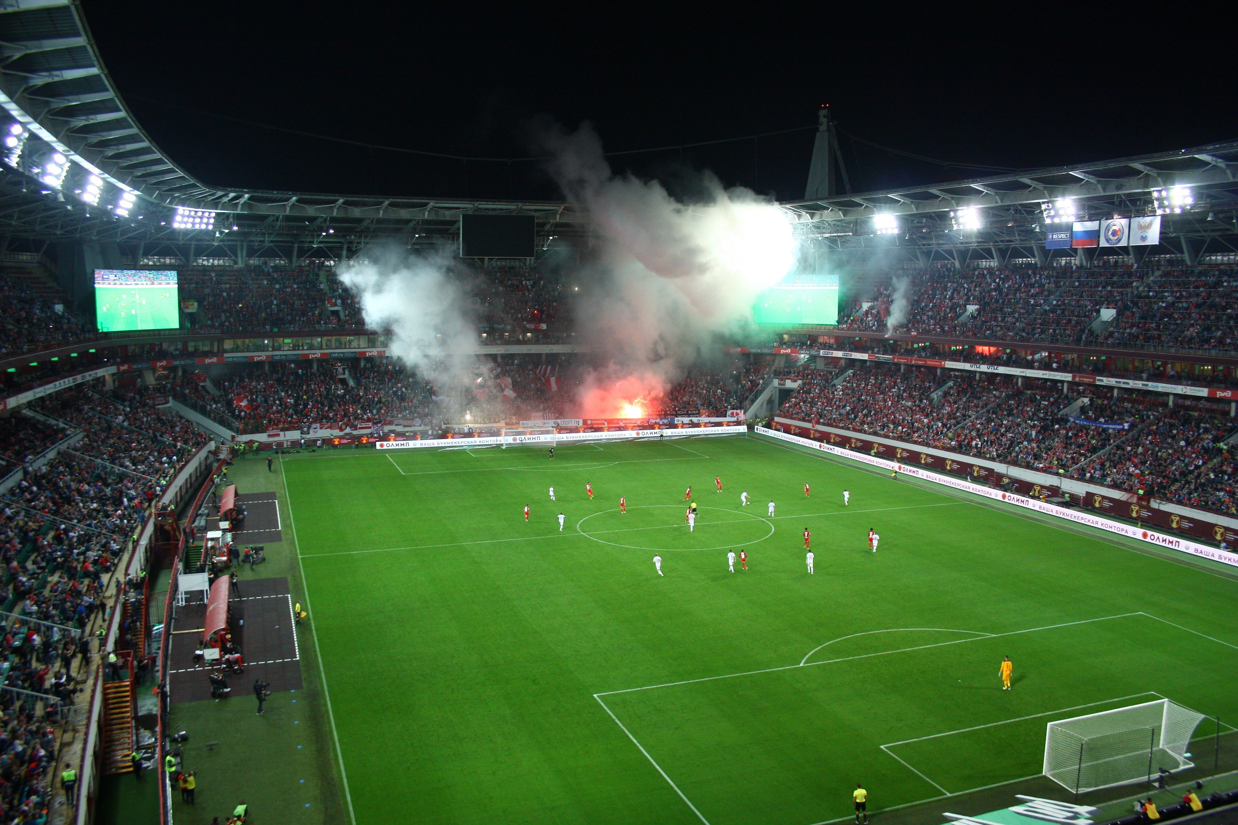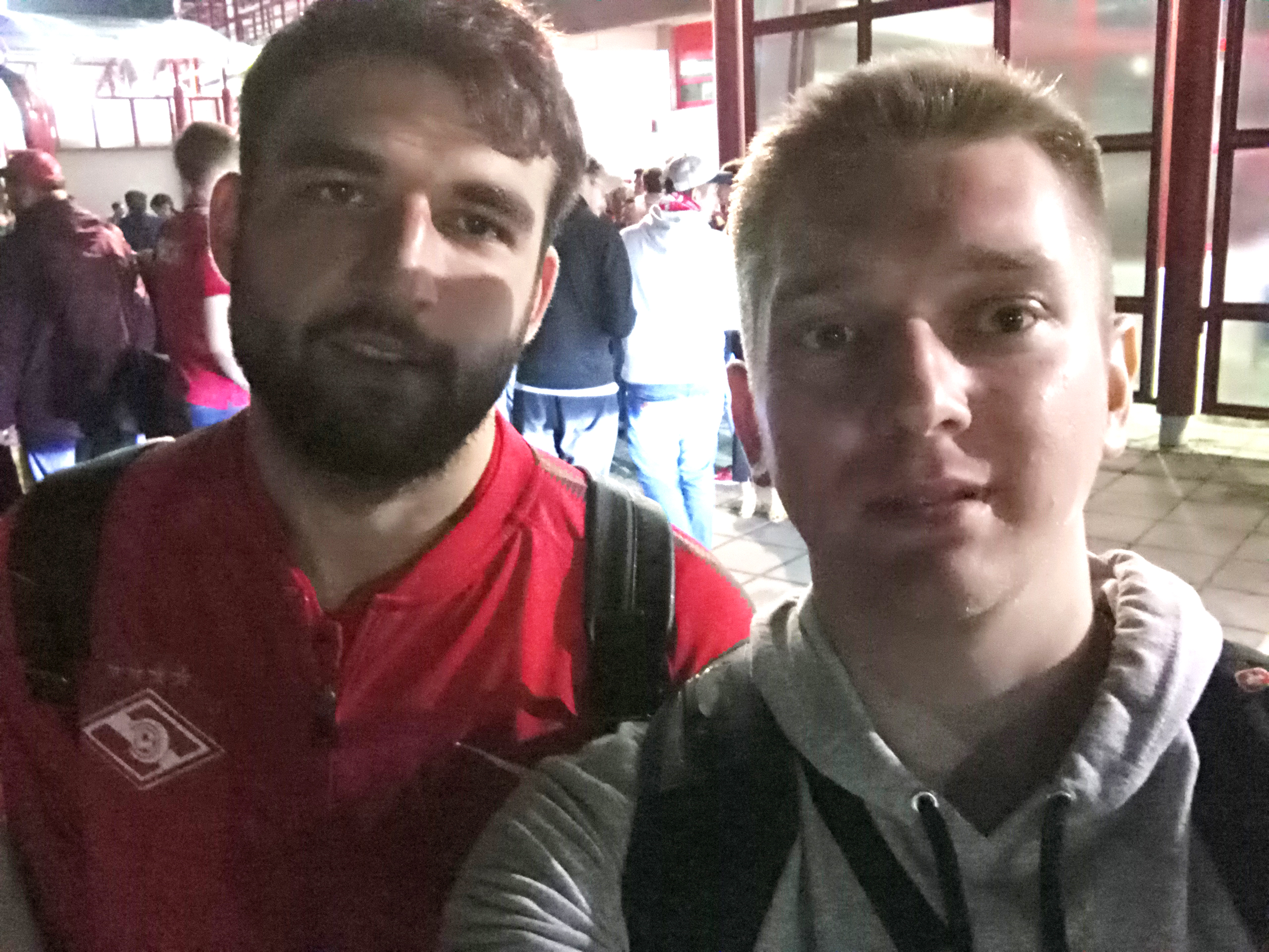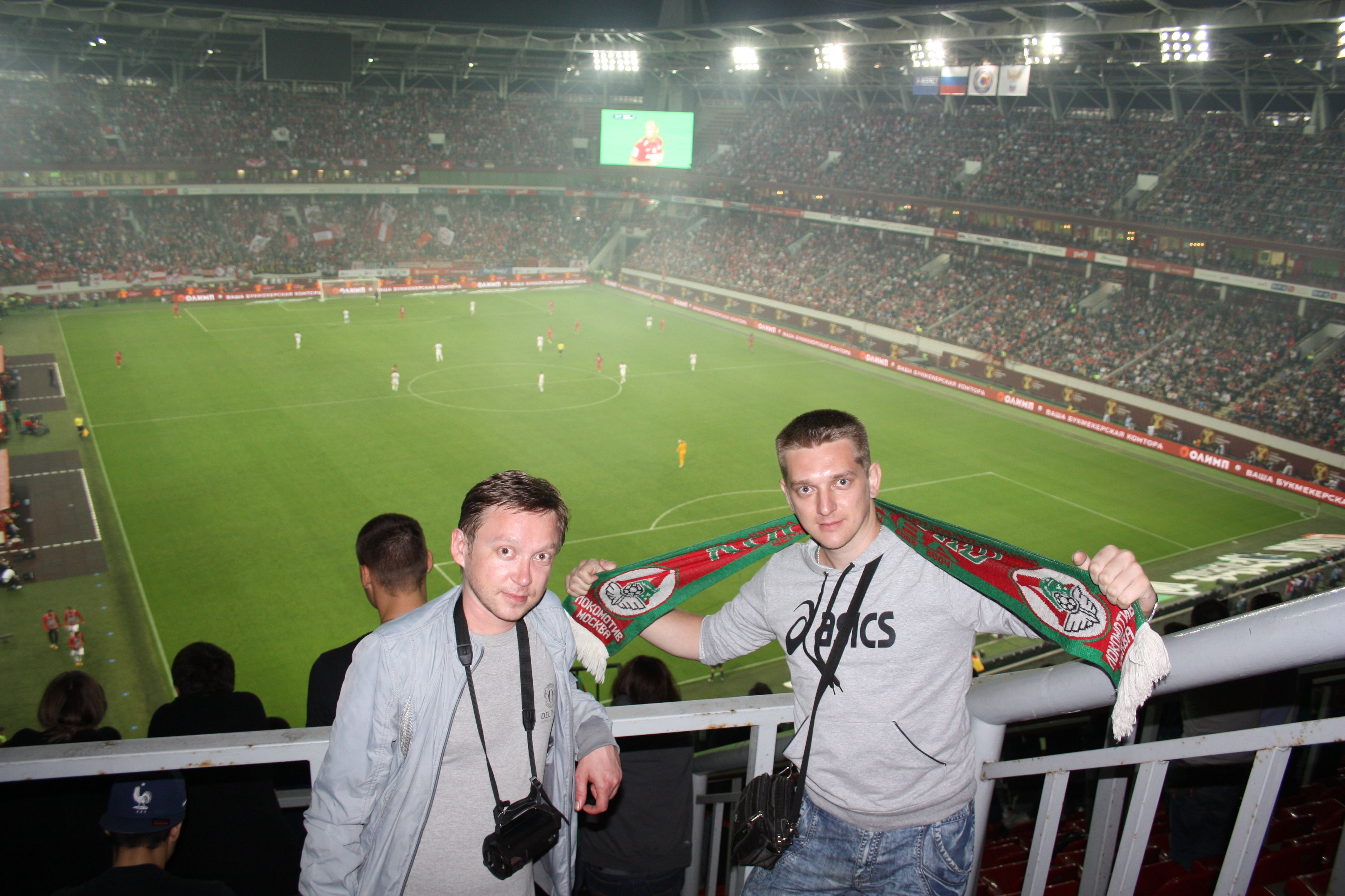 Нагулявшись по столице нашей Родины, мы прибыли на стадион «Локомотив». Здесь царила приятная обстановка. Болельщики шли на трибуны занимать свои места. Не было ни стычек, ни конфликтов. Одни из болельщиков «Спартака» увидели, что мы идём вдвоём и у нас шарфы разных клубов. Они нас поприветствовали и сказали, что мы – настоящие друзья.