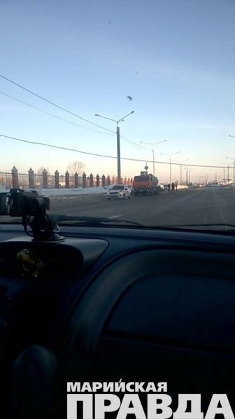 Сегодня, 30 января, утром в Йошкар-Оле столкнулись бензовоз и «Лада». Легковую машину отбросило на газон. Об этом порталу marpravda.ru сообщила читательница Наталья Воронина.
