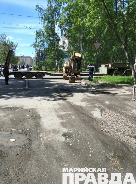 В Йошкар-Оле при перевозке экскаватора случилась небольшая авария. Экскаватор сорвался с прицепа грузовика на проезжую часть. Об этом рассказал читатель Андрей, приславший нам фото с места происшествия.