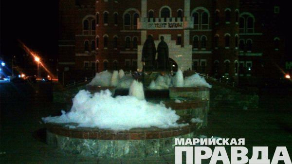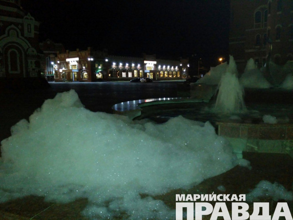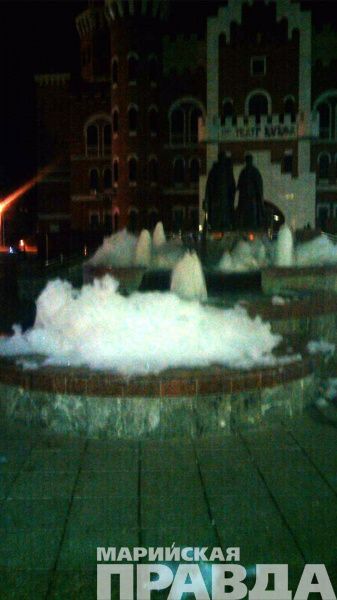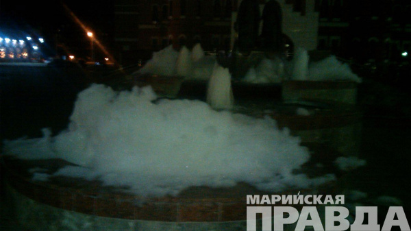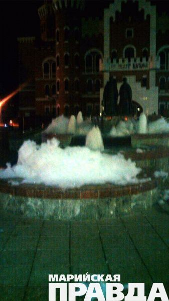 - Ночью фонтан у памятника Петру и Февронии на Патриаршей площади Йошкар-Олы покрылся горами белой пены. Ее клочки валялись даже за пределами чаши бассейна. По всей видимости, любители необычных зрелищ снова вылили в фонтан какое-то моющее средство. Смотрелось это, конечно, интересно, но ведь работники водоканала марийской столицы не раз объясняли, что подобные шутки могут вывести оборудование из строя, - пишет Максим.