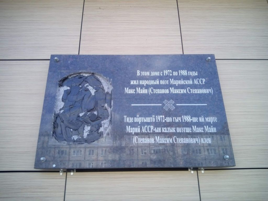 О том, что с мемориальной доски на доме №47, расположенном на улице Красноармейской в Йошкар-Оле, пропал портрет поэта Макса Майна, рассказал «Марийской правде» читатель Максим, прислав фото того, что осталось от памятной таблички.