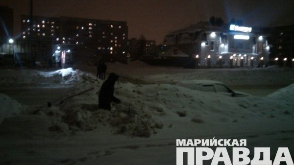 - Вчера вечером мы с женой увидели любопытную картину в Йошкар-Оле, недалеко от перекрестка улиц Баумана и Анникова. Стоя по пояс в снегу, женщина орудовала лопатой, явно что-то откапывая в огромном сугробе у дороги. Мы спросили, вы не автомобиль откапываете? Женщина ответила, что да, машину засыпали. В это время подошли женщины, которые рассказали, что автомобиль стоял тут очень давно. Вероятно, коммунальщики устали предупреждать автомобилистов о том, что припаркованные вдоль дорого автомобили мешают уборке снега и просто решили не обращать на них внимания. В итоге автомобиль оказался внутри громадного кургана.