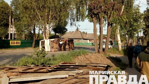 В Йошкар-Оле на перекрестке улиц Первомайской и Водопроводной произошло ДТП с участием микроавтобуса. После столкновения с автомобилем «Хендаи», микроавтобус MERCEDES опрокинуло на бок и протащило юзом по дороге около 20 метров. Об этом порталу marpravda.ru сообщила читательница Евгения, приславшая фото с места.