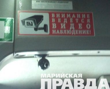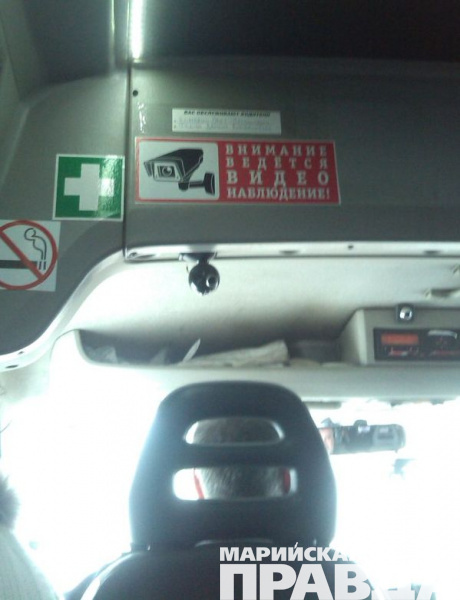 В Йошкар-Оле, в «маршрутках» за пассажирами наблюдают с помощью видеокамер, установленных в салоне. Об этом порталу marpravda.ru сообщила читательница Галина Тимирязева, приславшая фото.