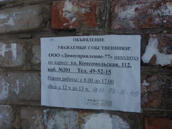 По словам женщины, она уже несколько раз обращалась к коммунальщикам, но ее только «кормят обещаниями». Звонила она по номеру, который написан на объявлении, висящем у подъезда.