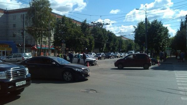 В центре Йошкар-Олы столкнулись два автомобиля. Движение затруднено