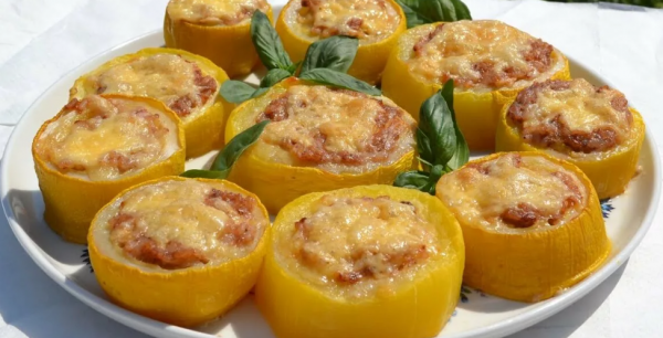 Кабачки нарезаем нетолстыми кружочками. Кольца кабачков плотно укладываем в форму, а между ними размещаем фарш.