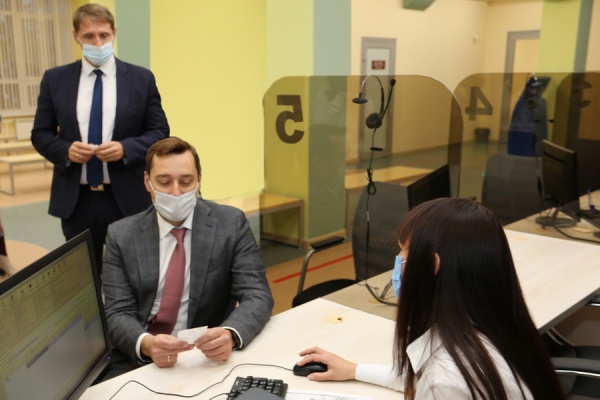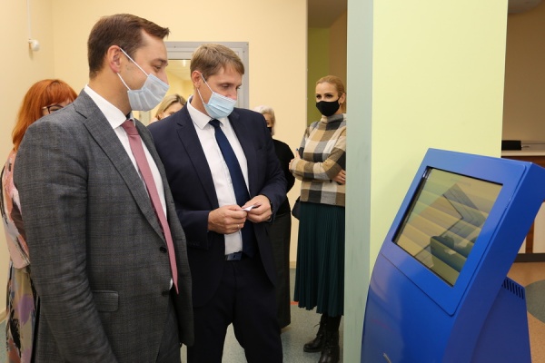 Гостям, пришедшим на открытие МФСЦ, продемонстрировали работу терминала электронной очереди, окон обслуживания студентов, окон выдачи документов, зоны ожидания, зоны для заполнения, стола с интегрированной беспроводной зарядкой и переговорных комнат.