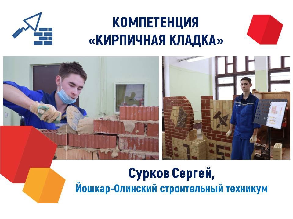 Сергей Сурков в компетенции «Кирпичная кладка» (Йошкар-Олинский строительный техникум);