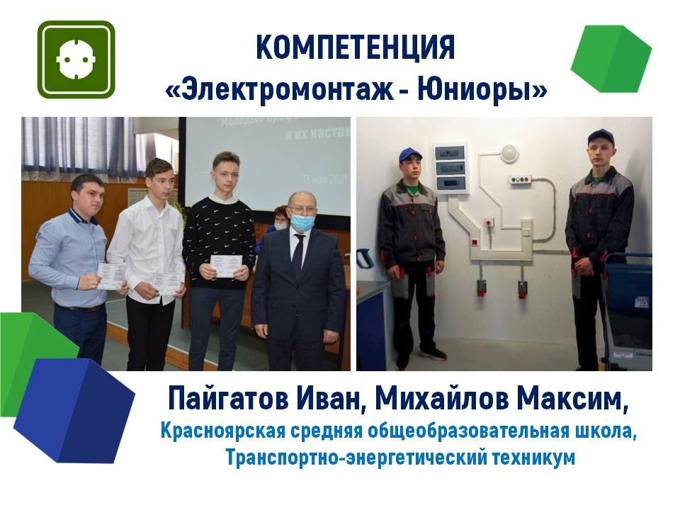 Иван Пайгатов и Максим Михайлов в компетенции «Электромонтаж - Юниоры» (Красноярская средняя общеобразовательная школа).