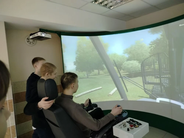 Гости из Новоторъяльской и Токтарсолинской школ отправились в Институт леса и природопользования. Ребятам продемонстрировали высокотехнологичное оборудование для деревообработки и рассказали о тонкостях профессии метролога. Дети узнали, как работают лесозаготовительные машины, и даже виртуально попробовали ими управлять.