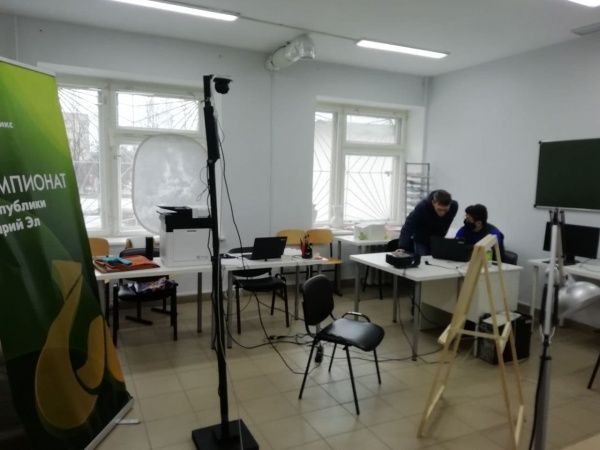 В день открытия Национального чемпионата, в 12 часов дня, в Йошкар-Олинском технологическом техникуме началась работа на площадке по компетенции «Изобразительное искусство». В центре небольшой учебной аудитории мольберт, стул и место для размещения конкурсного задания. Остальное пространство кабинета занимает техника: камеры и ноутбуки.