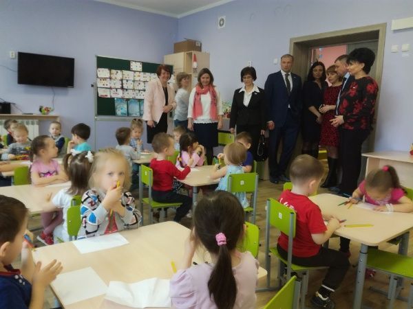 Члены партии «Единая Россия» внимательно осмотрели детский сад «Василек», в том числе кабинет дополнительного образования, медицинский кабинет и логопункт, познакомились с маленькими воспитанниками.