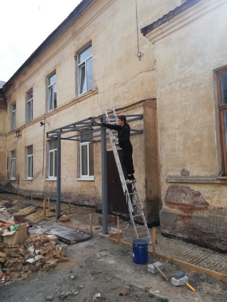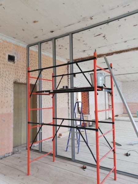 Подрядчик демонтировал старое напольное покрытие и подготовил помещения для перепланировки, почти наполовину заменил электропроводку, продолжает ремонтировать теплоузел и крыльца. Начались работы по парадному входу, сообщается в группе школы в соцсети «ВКонтакте». Также в фойе появится панно в виде самолёта.