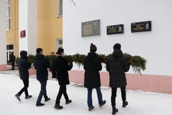 Конечно, самой волнительной частью мероприятия стал момент открытия отреставрированных мемориальных досок. Студенты и школьники возложили к ним гирлянду из еловых веток, а затем все присутствующие под звуки метронома почтили память погибших минутой молчания.