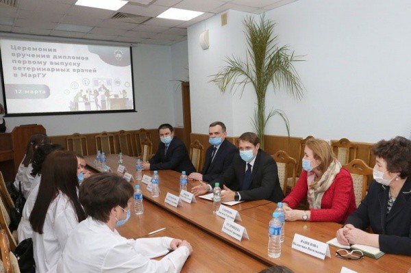 Лицензию на подготовку специалистов высшей квалификации «Ветеринарный врач» МарГУ получил в 2016 году, сообщили в пресс-службе вуза. Тогда первыми студентами курса стали практикующие ветеринарные фельдшеры крупных агропромышленных предприятий республики. А в пятницу семеро студентов, успешно прошедших итоговую аттестацию, получили на руки дипломы.