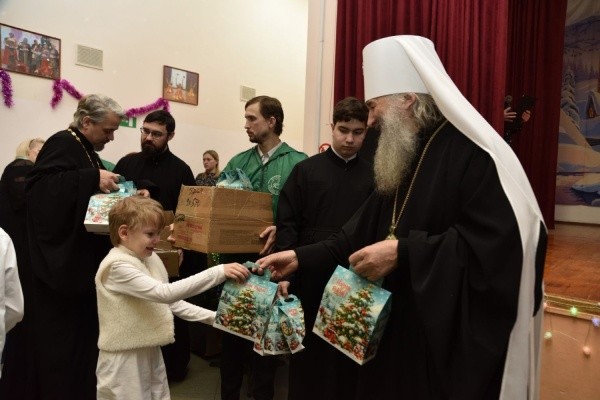 «Святая Рождественская ночь открывает для всех нас великую милость и любовь Божию. Посмотрите – Сын Божий рождается на земле в таком смирении, что каждый человек может принять Его в свое сердце. Но не все тогда, две тысячи лет назад, узнав о рождении Богомладенца, пришли поклониться Ему. И ныне, в современном мире, эта история повторяется – многие ли спешат в Рождественскую ночь в храмы, прийти и поклониться Господу? Ведь не Богомладенцу это нужно, а нужно нам самим – потому что всякий, приходящий ко Господу в эту святую ночь, получает несказанную радость и утешение. Господь обнимает нас всех Своей любовью, согревает нас. И ждет от каждого, чтобы мы этой любовью делились с ближними», – обратился владыка и вручил детям и воспитателям сладкие подарки.