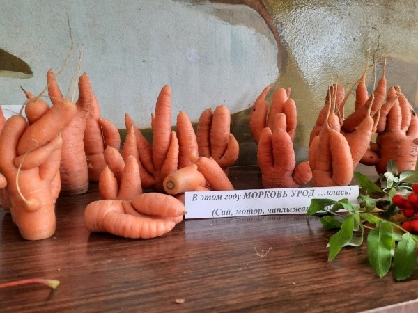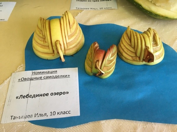 На выставке есть и прекраснейшие букеты в вазах из тыкв, которые несут нотки печали и грусти, ведь в них – краски и запах ушедшего лета, до которого ждать почти целый год. Есть здесь и причудливые овощи, похожие на чудищ с тремя головами, четырьмя руками или хвостами (это уж кто как видит). На выставке можно увидеть героев мультфильмов, сказочные героев, морских обитателей, вырезанных из кабачков и тыкв. И многое другое.