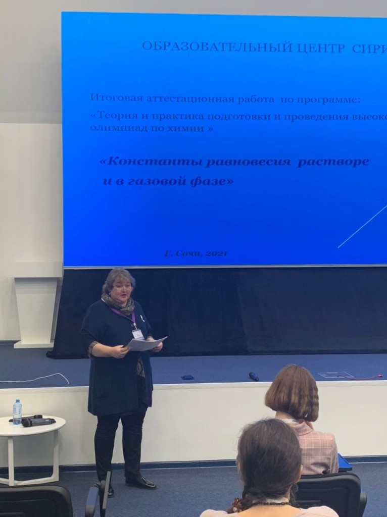 В Министерстве образования и науки Марий Эл сообщили, что на курсах также проходила учительская конференция, где преподаватель выступила с докладом по теме «Константы равновесия в растворе и газовой фазе».