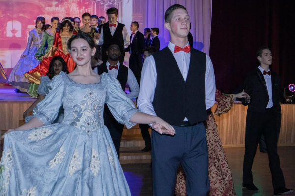 Украшением праздничного вечера стали исторические танцы: полонез, экосез, падеграс, мазурка, полька и современный танец.