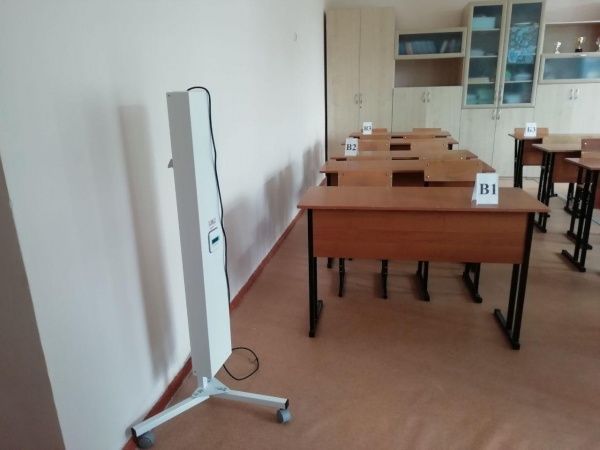 По словам специалистов ППЭ, аппараты мощные, один раз в час обработки в каждой аудитории будет достаточно, чтобы обеспечить безопасность всех участников ЕГЭ, при этом выходить на время работы аппарата из аудитории не надо, он безопасен.
