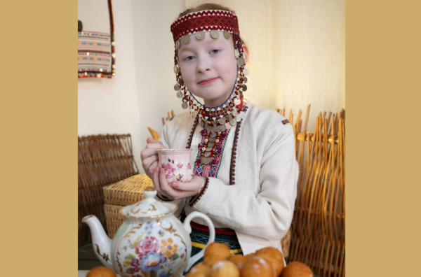 София Арановская вместе со своей семьей и педагогом Ириной Киселевой представила на конкурс фотоработу «Марийский колобок – Ӱяча».