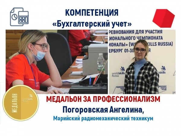 Отметим, что два студента из Марий Эл уже получили награды по результатам 2021 года в рамках итоговых соревнований по компетенциям, не принимающим участие в национальном финале WorldSkills Russia. Студент Строительно-технологического техникума Разиф Сайфутдинов завоевал медальон за профессионализм по компетенции «Печное дело», а учащаяся Марийского радиомеханического техникума Ангелина Погоровская стала обладательницей награды по бухгалтерскому учету. Результаты ребят также внесены в общий медальный зачет нашей республики.