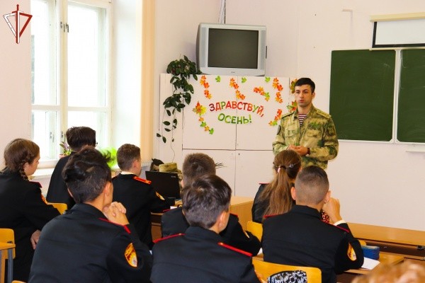 Представитель Росгвардии капитан Руслан Абдуллаев рассказал школьникам о спецподразделениях войск национальной гвардии, осуществляющих борьбу с терроризмом и экстремизмом, о круглосуточных боевых дежурствах сотрудников и военнослужащих Росгвардии по обеспечению охраны общественного правопорядка на территории республики и за ее пределами.