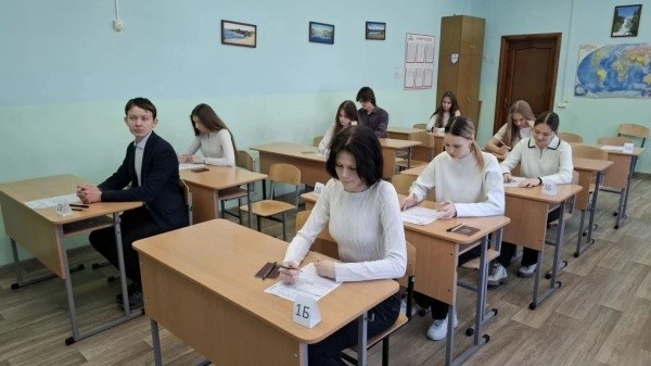 Пробный экзамен проходил по всем правилам: школьники проходили через рамки металлоискателя на входе, слушали инструктаж, а после работали с контрольно-измерительными материалами.