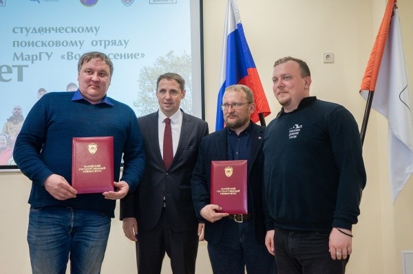 18 апреля 2023 года, в преддверии Дня единых действий в память о геноциде советского народа, в МарГУ прошло торжественное мероприятие, посвященное празднованию 10-летия студенческого поискового отряда “Воскресение” и открытию республиканской гражданско-патриотической акции «Вахта Памяти». Гостями мероприятия стали Евгений Кузьмин, Первый заместитель Председателя Правительства Республики Марий Эл, Станислав Игошин, Председатель Комитета молодежной политики Республики Марий Эл, Андрей Мордвинов, председатель ассоциации студ.поисковых отрядов, член координационного совета Поискового Движения России-Председатель в приволжском федеральном округе, руководители отрядов из многих регионов страны, представители Российского исторического и Российского военно-исторического обществ.